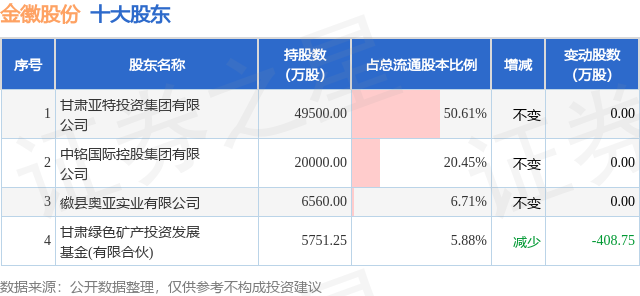 根据金徽股份2025年三季报公布的十大股东详情如下: