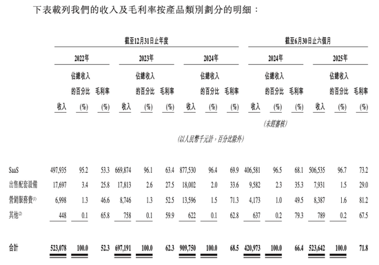 《招股书》显示,聚水潭的ERP产品为之一大营收来源,客户涵盖服装鞋袋、家居用品、食品饮料等领域。2022年至2024年、以及2025年6月30日的六个月(下称“报告期”),电商 SaaS ERP 产品收入分别为4.571亿元、6亿元、7.65亿元、4.28亿元,占同期总营收比例依次为87.4%、86.1%、84%、81.7%。