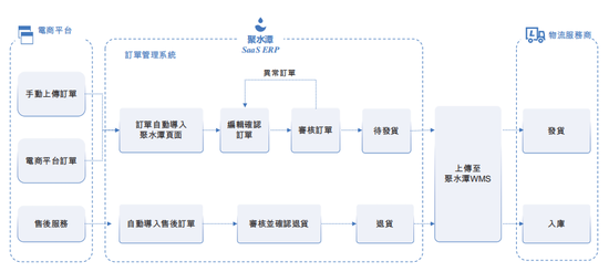 一旦买家在商家的网店下单,电商平台便会生成订单,并自动加载至ERP产品。结合系统自动审核及人工干预审核,商家可在不同的电商平台上审核及管理来自其网店的订单。一旦订单被审核及处理,即可交付予买家。ERP产品与物流服务提供商连接,商家可轻松安排送货。