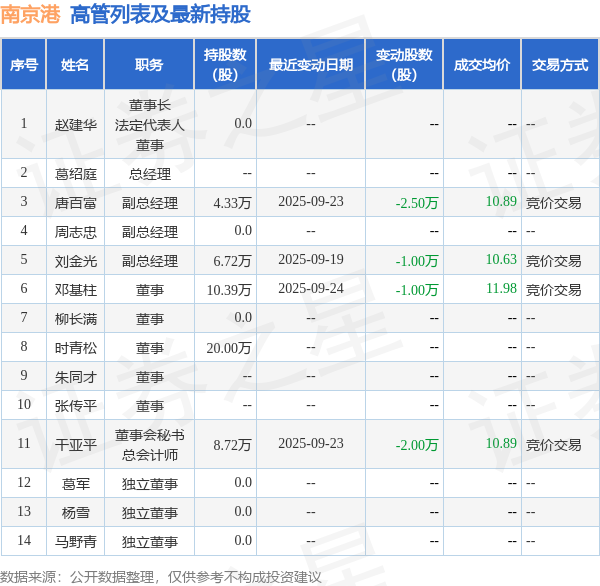南京港的高管列表及最新持股情况如下: