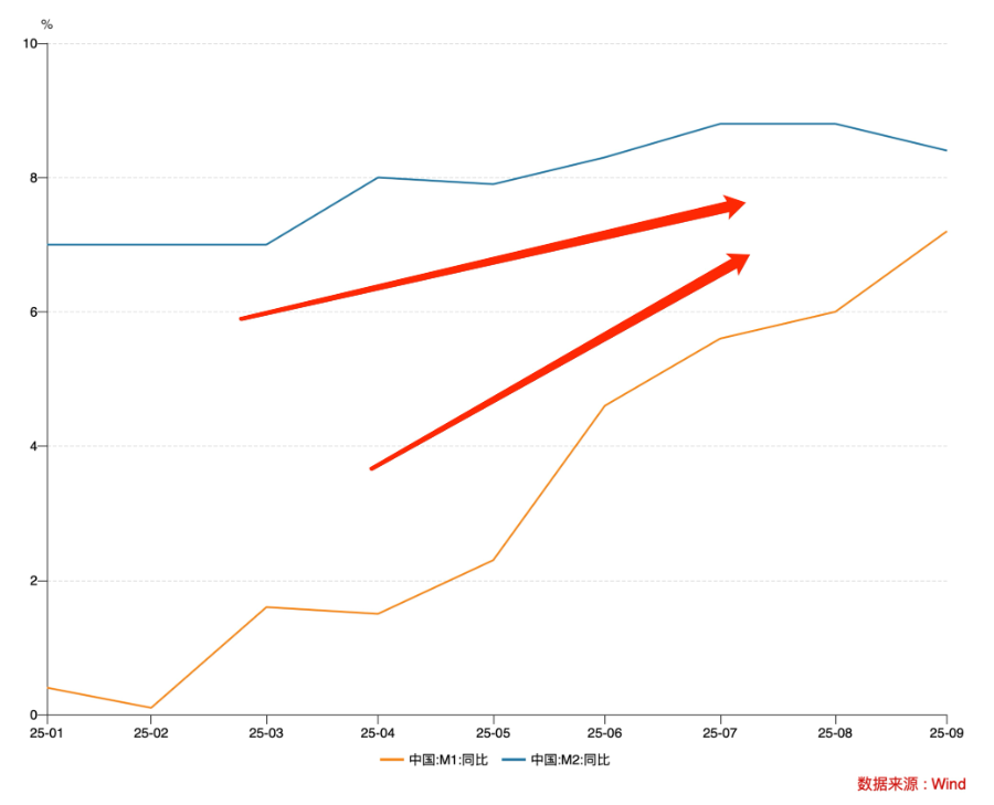 市场分析认为,近几个月M1增速回升态势明显,除了去年同期低基数影响外,也与企业和居民定期存款活化有关。今年以来M1-M2剪刀差明显收敛,反映出企业生产经营活跃度提升、个人投资消费需求回暖等积极信号。
