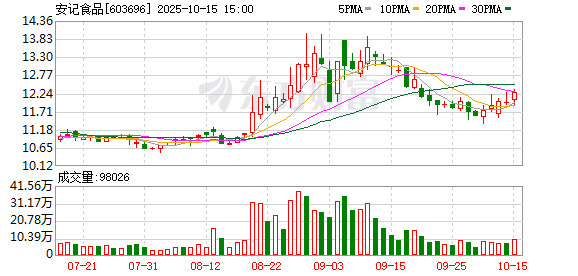 证券时报·数据宝统计显示,安记食品今日收盘价为12.27元,上涨2.34%,日换手率为4.17%,成交额为1.20亿元,全天主力资金净流入301.18万元,近5日该股累计上涨5.96%,近5日资金合计净流入164.88万元。