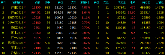 2025年10月16日,早盘开盘,国内期货主力合约涨跌不一。沪银涨超4%,沪金、涨超1%。跌幅方面,(EB)、(欧线)、石、纯苯、、跌超1%。
