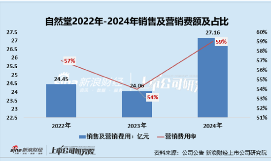 2022年至2024年,自然堂的销售及营销费用分别为24.45亿元、24.06亿元、27.16亿元,2025年上半年为13.47亿元。分别占到当年收入的57%、54.2%以及59%。2025年上半年,这一比例为55%。