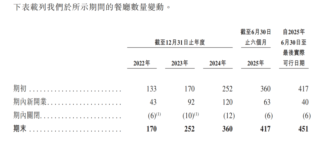 自2022年至最后实际可行日期,遇见小面的餐厅数量已由133家增长至451家,包括中国内地22个城市的440家餐厅及香港特别行政区的11家餐厅。其中有101家新餐厅在积极筹备中,有望年内突破500家门店规模。据悉,其新加坡首店正在筹备中,预计之一家海外门店将于今年12月正式开业。