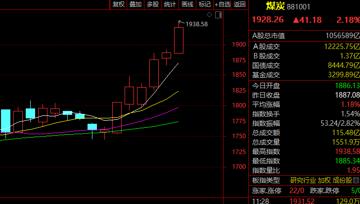 煤炭股早间集体走强,板块指数盘初一度放量大涨近3%,创年内新高。再度触及涨停,此前4日已3度涨停,也一度冲击涨停,之前同样4日3涨停,、等涨幅居前。