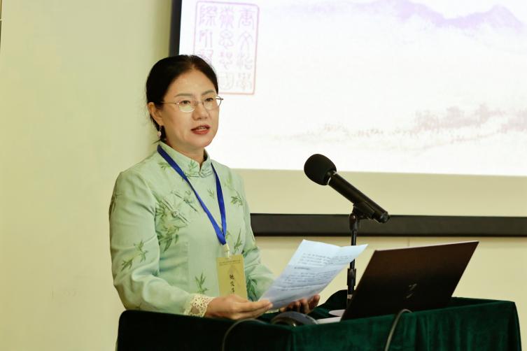 鲍俊萍女士对会议召开表示热烈祝贺,她指出在西学东渐背景下,唐文治先生以“求实学、务实业”为宗旨,通过办学、编订经典、创立“唐调”吟诵等一系列实践,守住了民族文化的根脉,为当代文化传承提供了宝贵借鉴,并预祝会议取得丰硕成果。