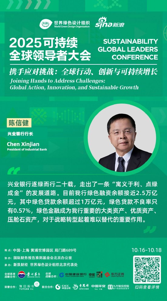 2025可持续全球领导者大会于10月16日-18日在上海市黄浦区世博园区召开。行长陈信健出席大会并分享了兴业银行的绿色金融实践。