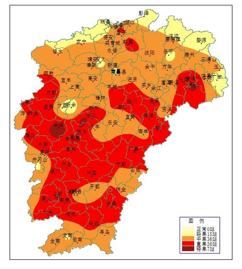 10月16日,据江西气象台消息,10月以来,江西省平均降水量11毫米,较常年同期偏少六成,主要降水出现在13日。全省平均气温为28.2℃,较常年同期偏高7℃,为1961年以来历史同期第1高位。其中1日至12日,江西大部分地区持续晴热高温天气,日更高气温以7日修水38.9℃为更高。据最新监测显示,全省有32个县(市、区)出现中度及以上气象干旱。