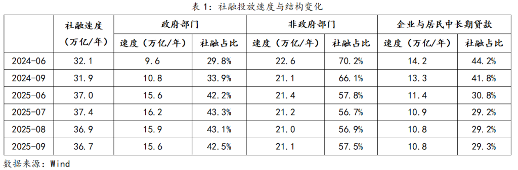在之前的“月评”中,我们曾多次述及:由于 *** 融资节奏的靠前,四季度 *** 融资的投放速度将会出现回落,至年底前将回落至14万亿/年的水平,如果没有额外的补充因素,社融速度将降至35万亿/年,进而对经济的支撑力度会出现明显削弱,甚至会能影响全年5%增速目标的实现。