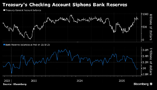 美联储缩表会减少美国银行系统中的准备金数量,目前约为3万亿美元,已接近被认为“足够”的水平。巴克莱策略师Samuel Earl表示,财政部一般账户余额增长进一步消耗储备,加大美联储停止缩表的压力,最终将需要扩大资产负债表。