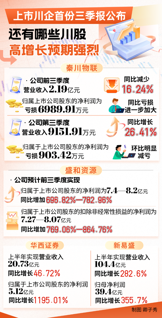虽然目前仅有少数川股发布了三季报业绩预告,但从上半年的业绩表现以及经营情况来看,不少公司在前三季度甚至全年高增长预期强烈。综合中报业绩以及机构观点来看,、等川股业绩高增或是大概率事件。