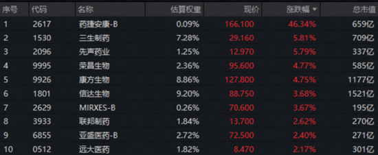 港股通创新药ETF(520880)覆盖37家创新药研发类公司,33股收涨,权重股信达生物、康方生物、三生制药分别上涨3.68%、4.75%、5.81%,、中国生物制药、石药集团等均收红。