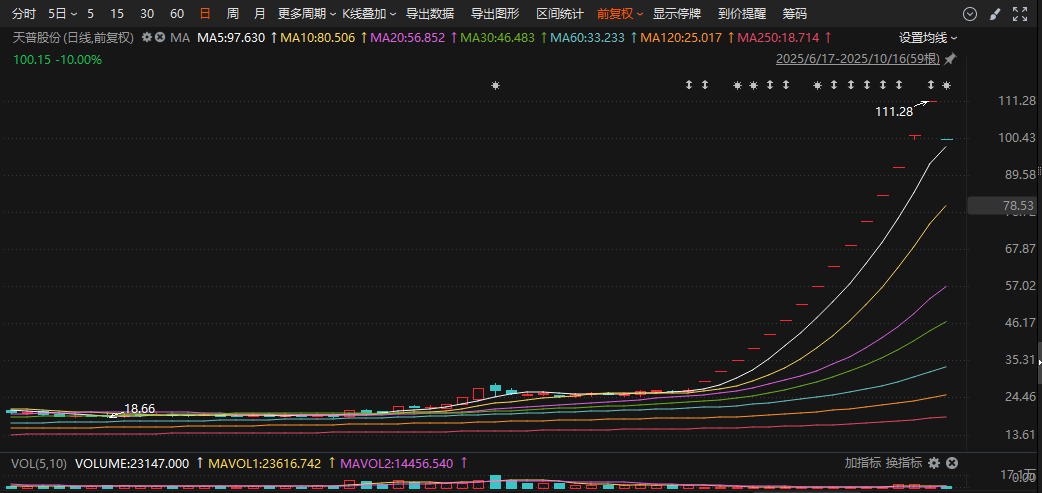 10月16日,天普股份“一字”跌停,截至收盘,换手率为1.73%,总市值为134.28亿元。