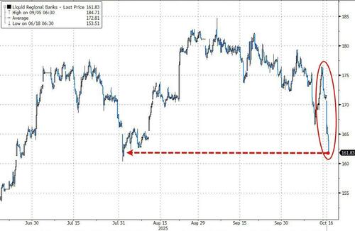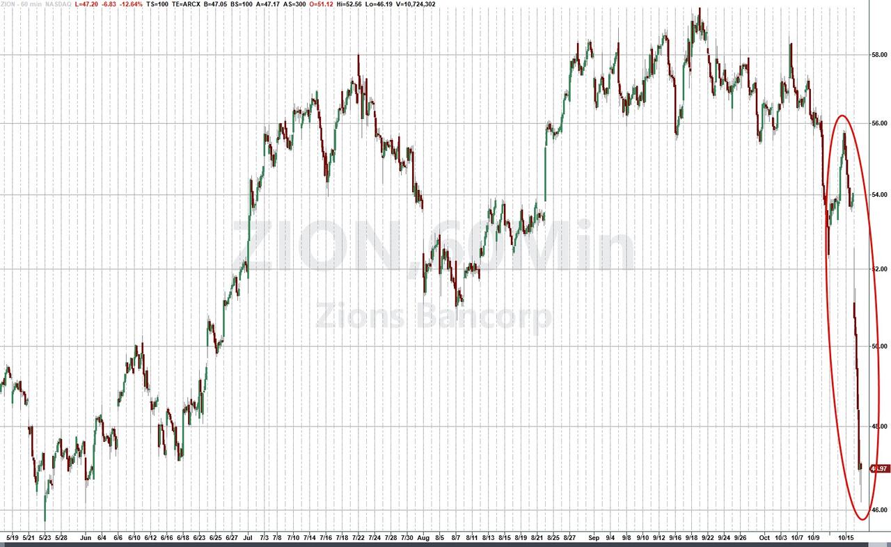 其中,美国区域性银行Zions Bancorp股价单日暴跌了13%,此前该银行披露其加利福尼亚分部的两笔贷款出现意外亏损,这加剧了投资者对隐藏的信贷压力的不安。另一家同类银行也Western Alliance下跌了10.8%,此前该公司称已对一名借款人提起欺诈诉讼。