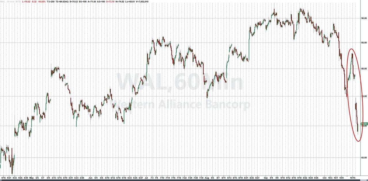 另一家区域性银行Western Alliance周四也重挫逾10%。股价下跌前,Western Alliance宣布就向Cantor Group V LLC实体提供的循环信贷额度提起诉讼,以追回约1亿美元,并指控“借款人存在欺诈行为”。这家总部位于亚利桑那州凤凰城的银行表示,在最近提交了一份同行银行8-K文件后,正在提供有关其一项信贷关系的更多信息。