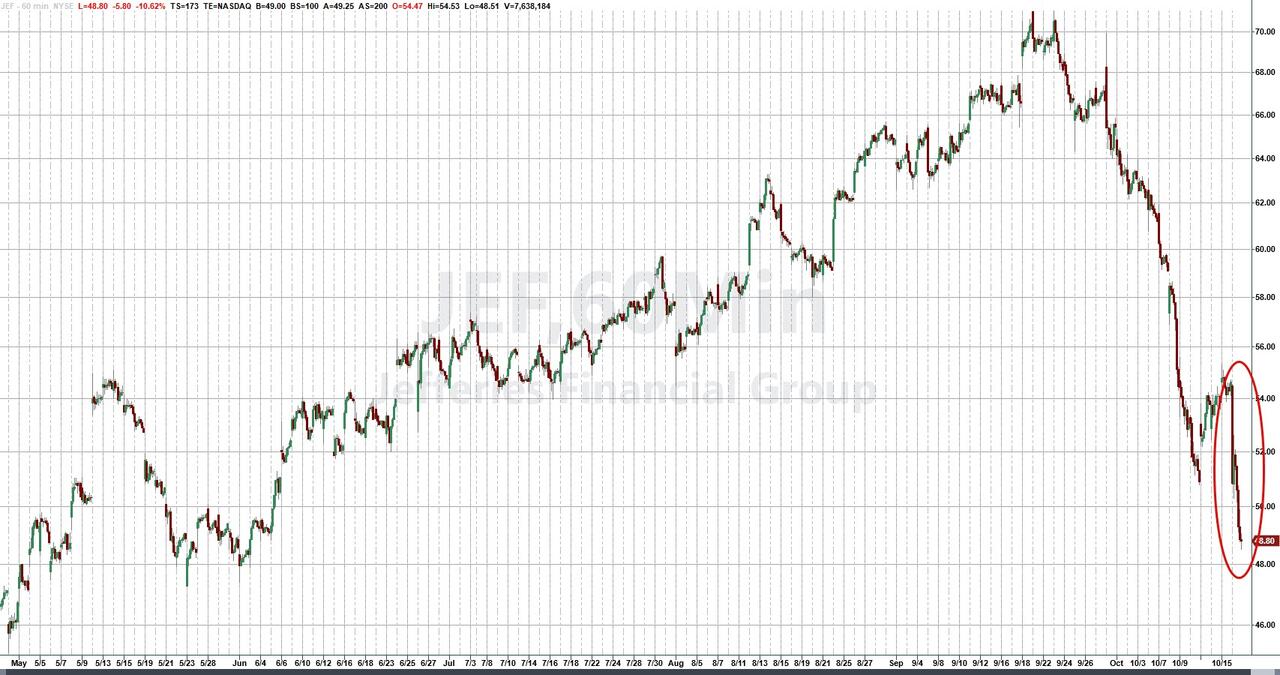 周四,除了上述两家区域性银行外,对此前破产的汽车零部件供应商First Brands存在风险敞口的投行Jefferies股价也进一步重挫了11%,该公司股价自10月以来已累计下跌了约23%,或将创下自2020年3月新冠疫情爆发以来最糟糕的单月表现。