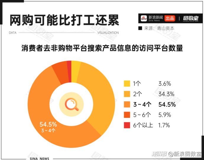 不仅如此,面对令人眼花缭乱的商品概念,消费者在购物时需要做更详细的功课,大大增加了消费者的负担。有报告显示,超半数消费者在决策过程中,会前往3-4个非购物平台搜索产品信息。