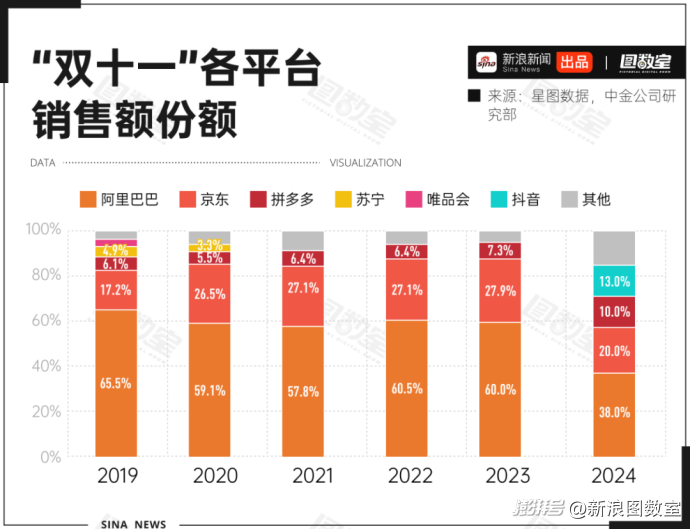 2025年,双十一步入第17个年头。尽管阿里巴巴依旧占据着更大的市场份额,但其份额正被后来者持续蚕食。特别是自2023年起,随着抖音、快手等短视频平台的强势入局,竞争格局愈发激烈,市场的蚕食与鲸吞正在加速。