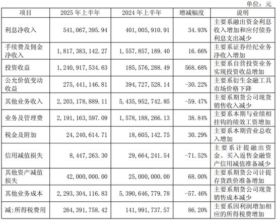 浙商证券在财报中表示,2025年上半年债券投资择时胜率较高,权益投资占比提升、营收扩大。今年上半年投资收益之所以会增长5倍多,一方面是股债双牛市场行情下把握住机会,权益资产提升丰厚资产收益;另一方面则是因为去年同期投资收益大跌,导致基数较低。