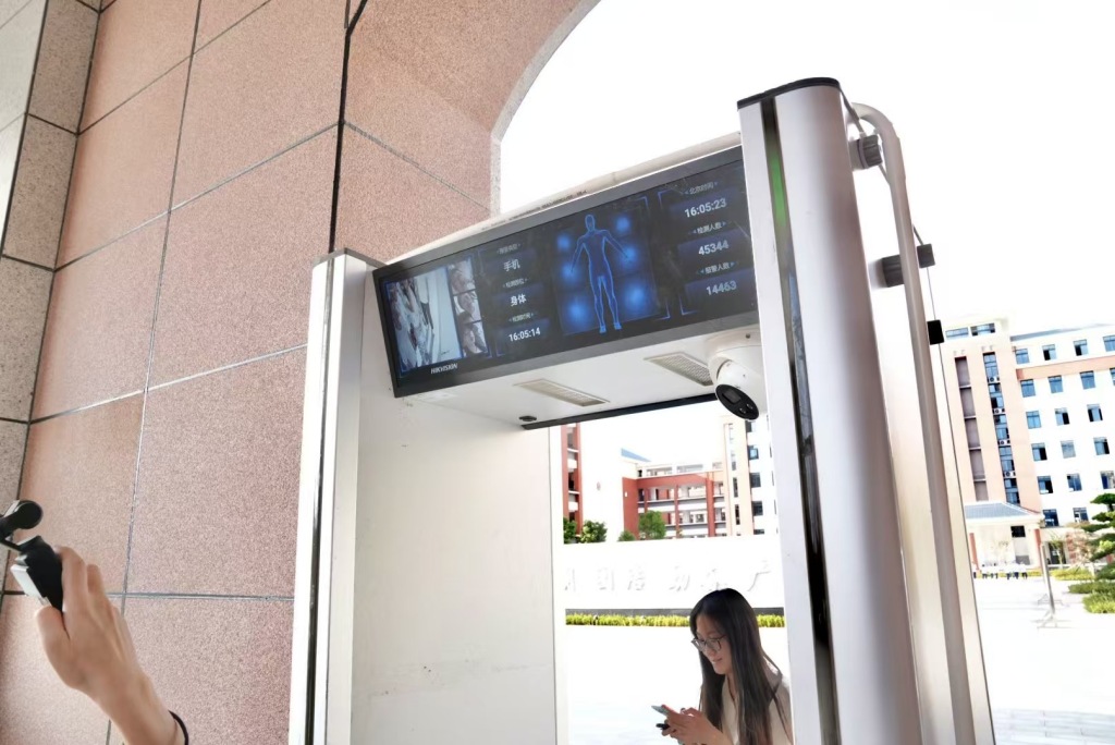 建宁一中大门口安装的智能检测系统。 澎湃新闻记者 王洛伊 图