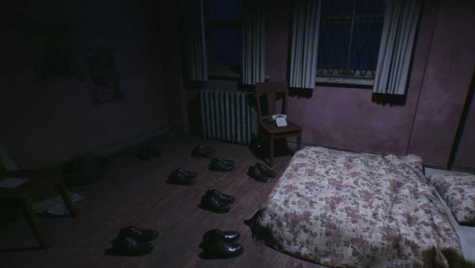 蕾切尔·薇姿的精神空间就充斥着弗洛伊德式的隐喻符号,玩家将在游戏的后期流程中对其进行探索。这是一间三口之家的破旧公寓,也是青少年时期的蕾切尔和她的父母共同居住的地方。蕾切尔年少时,她的父母利用年轻的女儿做起了皮条生意,接客利维坦公司的高层男性,将女儿当作他们通往权贵阶级的工具。因此我们可以在这间公寓中看到各种充满象征意味的视觉元素,蕾切尔父母房间的那个小小的偷窥孔洞就是权力凝视的典型意象,小孔通向蕾切尔的卧室,透过它,父母窥视着女儿的一举一动。相同的意象出现在希区柯克的惊悚电影《惊魂记》中:人格分裂的杀人凶手诺曼·贝茨正是透过一个通往浴室的小孔窥视住客玛丽莲——一位即将死于他手下的被害人。玛丽莲成为了诺曼 *** 投射的对象,而通过将摄影机的之一人称视点与诺曼的偷窥视点同步,玛丽莲也成为了观众欲望投射的对象。[13]相同的事情也发生在蕾切尔身上,只不过在游戏中,指向玛丽莲的男性凝视被置换为家庭结构中来自大家长的权力凝视,当玩家以之一人称的视角在蕾切尔的精神空间中亲自完成这一窥视动作时,“偷窥孔洞”这一符号所