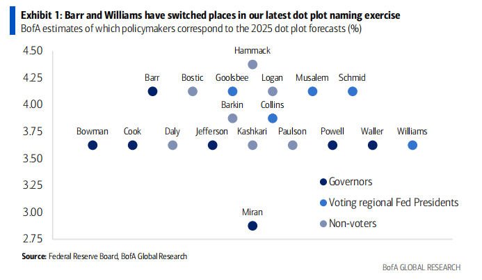 在美银看来,沃勒的基本预测仍是未来两次会议各降息25个基点,明年可能还会有更多降息。但沃勒对GDP强劲的承认表明,他可能对未来暂停降息持开放态度,而此前他强烈主张将利率降至中性水平2%。
