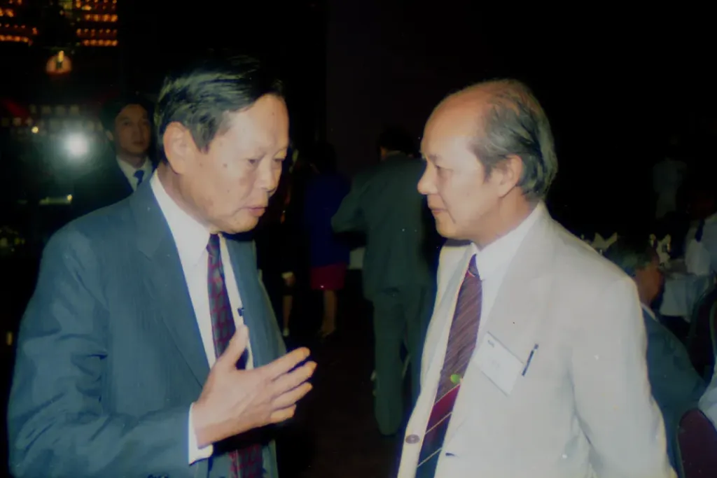 杨振宁与谷超豪在科学会堂。