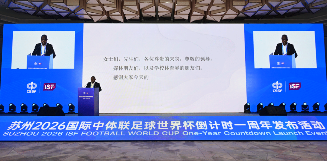 国际中体联足球技术委员会主席贾斯特斯·穆吉沙代表国际中体联考察团向大家宣布:根据考察评估,苏州完全有能力举办一届最非同寻常、最令人难忘的2026年国际中体联足球世界杯。他说,对苏州进行考察访问中,我们对所见的一切都感到非常满意。一流的设施、周密的组织以及热情好客的氛围,让我们对本次赛事的成功举办充满信心。我们无比自豪能将2026国际中体联足球世界杯带到此地。届时,全球的青少年运动员们不仅将在此竞技,更将在此学习、分享,收获一段终生难忘的宝贵经历。