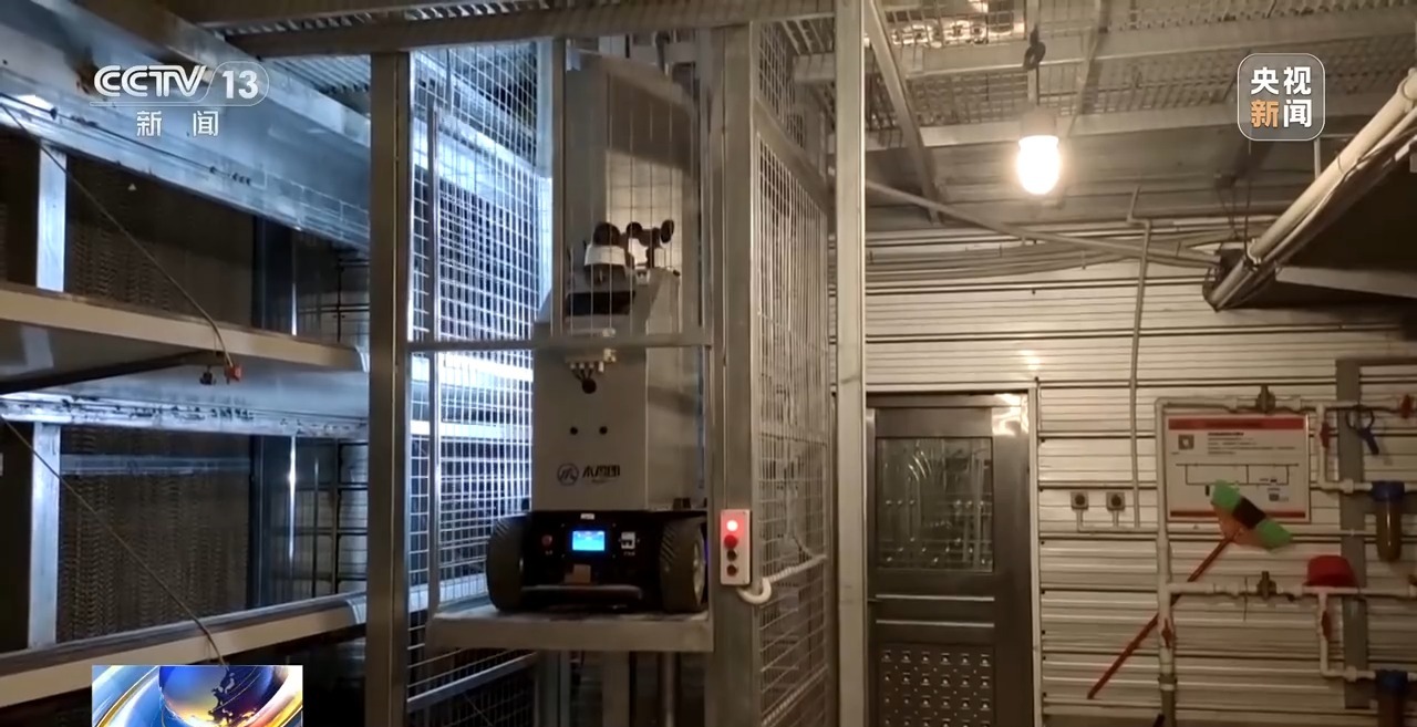 蛋禽养殖基地养殖负责人 杨春节:比如说机器人上面有一个风速仪,可以实时监测鸡舍里面的风速。除此以外,鸡舍里面的温度、湿度,也能实时监测到,能够实时形成一个环境云图,而且它还能监测每一笼鸡,产了多少个蛋,方便我们分析料蛋比。料蛋比就是鸡吃多少料产多少蛋,这样更有利于科学进行喂养。