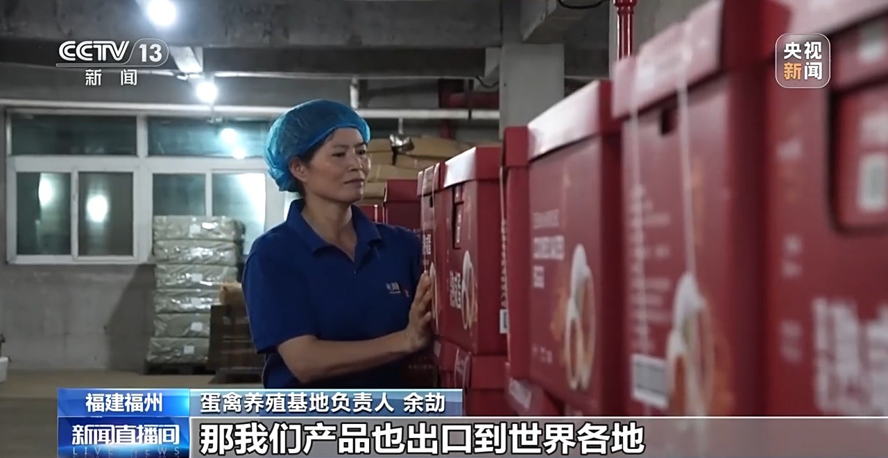 蛋禽养殖基地负责人 余劼:我们的产品也出口到世界各地,像北美市场,我们的供给量可以达到这个品类的30%到40%。现有欧盟我们会占到50%到60%的份额。