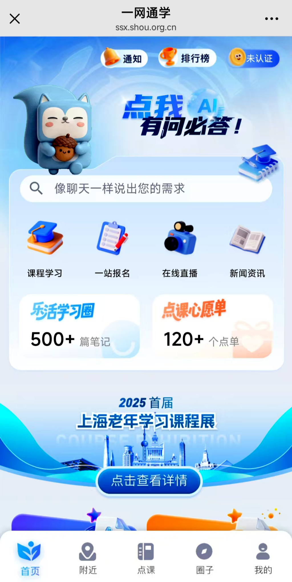 在上海市教卫工作党委、上海市教委的指导下,上海开放大学升级改造上海学习网,打造了公益的“一网通学”移动端学习平台。平台覆盖8000+学习资源,拥有“AI助学、课程学习、学习地图、点课许愿、学习圈、一站报名、积分兑换”七大特色功能。