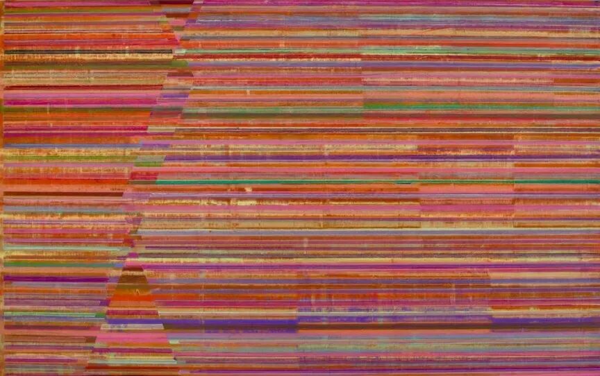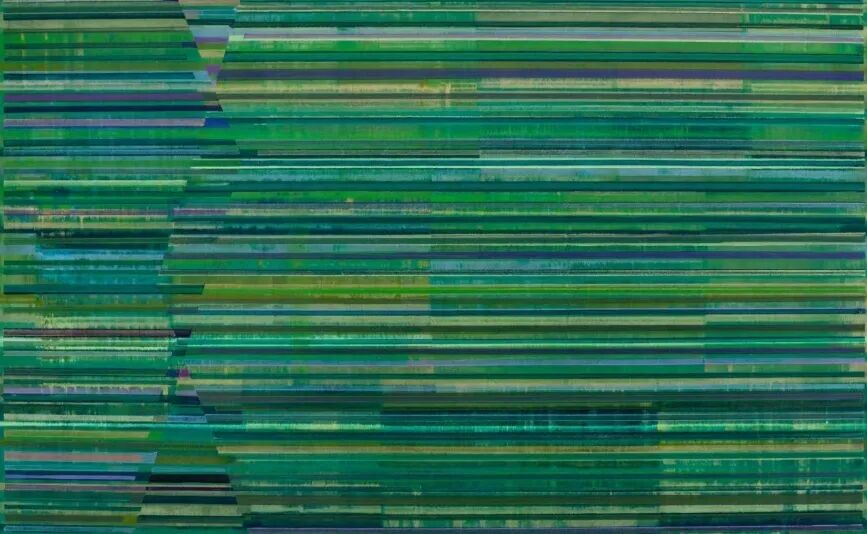展览中,艺术家曲丰国的创作以浓厚的视觉重量,将观者引向对时间幽微本质的思辨之境。他摒弃传统画笔,以刮刀为工具,通过身体的移动、颜料的挤压与覆盖,将绘画行为本身转化为一场“时间的仪式”。在《四季》等系列中,他以色彩象征时间流转——蓝绿之春、朱红之夏、白黄之秋、玄色之冬,线条的重复、叠加与刮除,不仅是形式的构建,更是时间经验的视觉凝练。