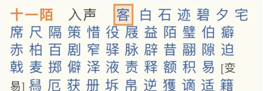 “客”字注音为“ke(入声)”。是故,《平水韵》中“恪”“客”仍分属不同入声韵部,读音不同。