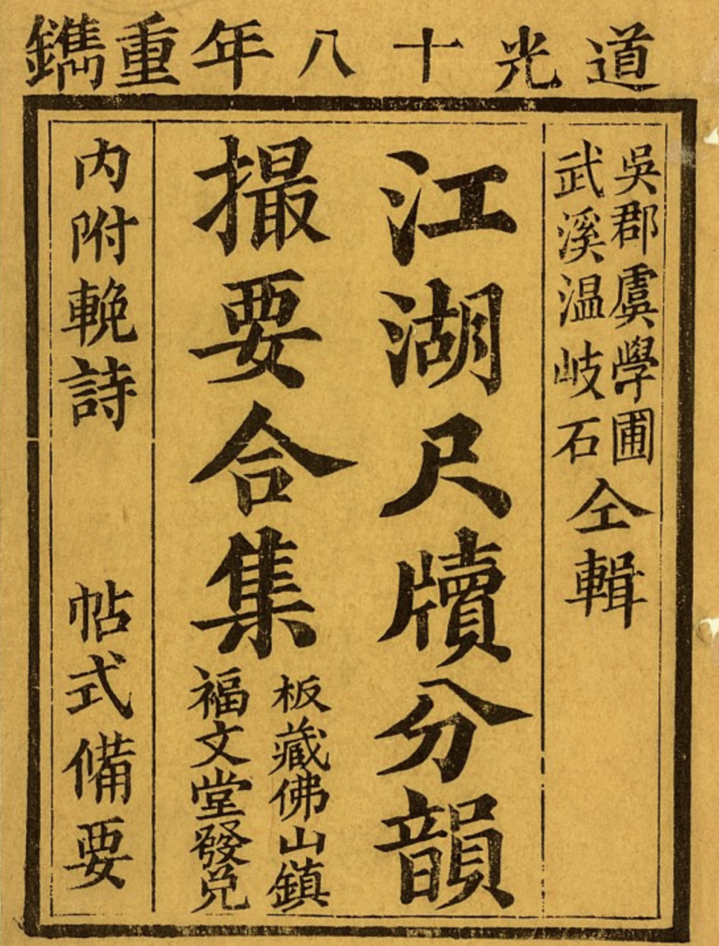 此乃清初记录粤语之韵书,引此旨在证明“恪”字在粤语中与“榷”同音。现存最早为1782年《江湖尺牍分韵撮要合集》。