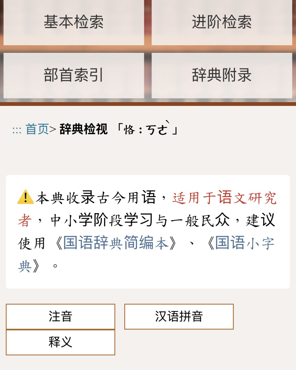 ②《国语辞典》(商务印书馆,1937年版):恪(愙)丂ㄜ科。又读くUせ却。
