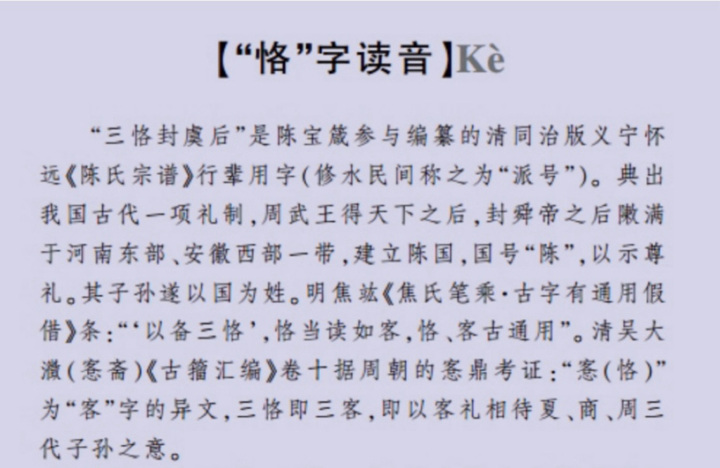 2.当代字典将“恪”统读为ke,实为1985年之后事。历代字书韵书中,“恪”之注音屡经变迁。民国以来多部辞典皆列que为“又读”,至1950年代甚至一度以que为正读,ke为又读。