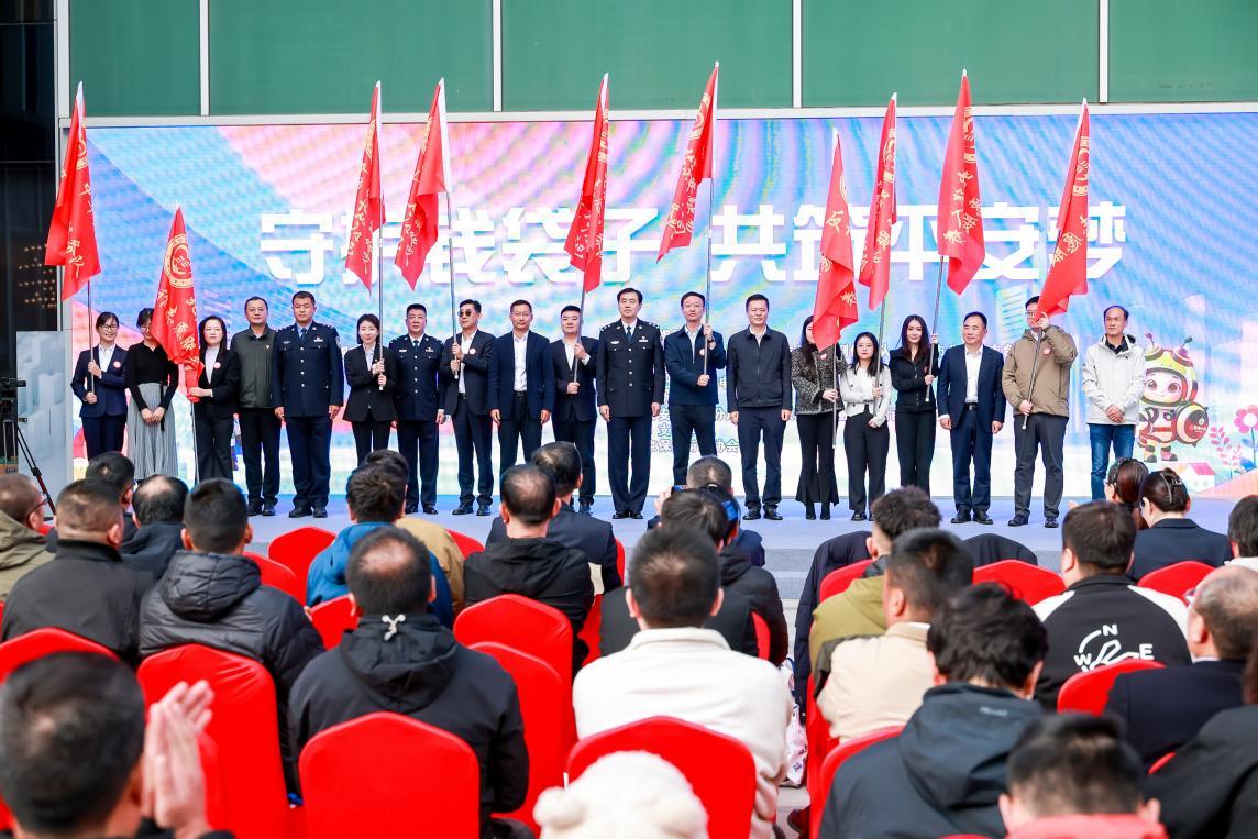 活动现场通过情景小品《反诈全家总动员》科普反诈知识,演唱消保歌曲《守护平安 “保” 卫战》传递消保理念;同时,活动组建反诈志愿者团队,金融办、北京广播电视台、丰台分局、平安集团、北京保险行业协会相关领导共同为团队授旗;活动结束后,周边金融机构筹备的反诈市集同步开启。