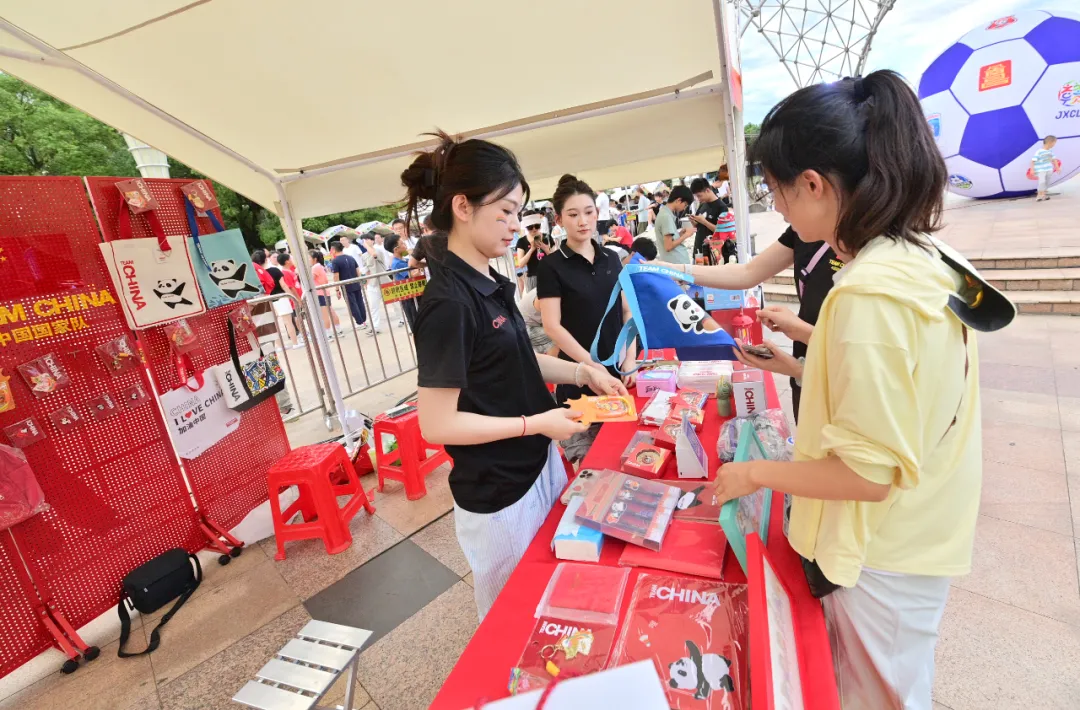 九江搭起露天观赛大屏,同步直播的同时,开设美食市集、农产品推广展位,让球迷在为进球欢呼时,既能品尝萝卜饼、修水“哨子”等特色美味,还能顺手带走湖口酒糟鱼等特产;南昌八一体育场外的“‘赣’好市集”人头攒动,美食、特产摊位前摩肩接踵,足球流量高效转化为消费增量;赣州天虹、万达等核心商圈变身为“第二现场”,配套发放1080万元消费券覆盖多业态,成功把观赛热情导入消费环节;在宜春,龙虾啤酒狂欢节在大屏直播旁火热进行,小龙虾的麻辣鲜香与球迷们的欢呼声、加油声交织,体育热情与消费需求在此刻升腾。