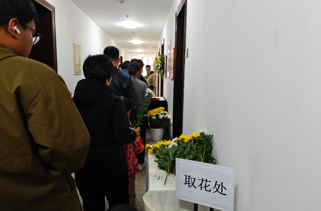 杨振宁先生缅怀室外设立的“取花处”。