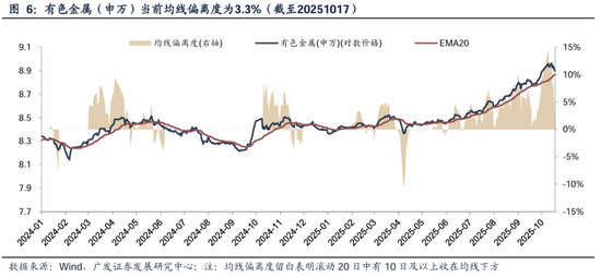 ①均线偏离度:ln(close)-ln(EMA20),计算收盘价偏离EMA20均线的程度,以反映主线趋势强弱,详见《如何区分主线是调整还是终结?-20250914》;