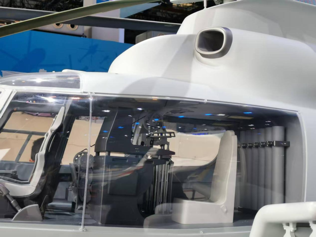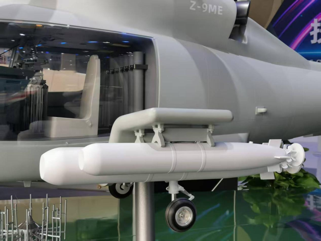 从展示的模型可以看出,直-9ME配备了雷达、光学探测和吊放声呐等多种搜潜设备,发现目标后可使用自身携带的*攻击目标。此外,该机还可以挂载空舰导弹,打击敌方水面舰艇。