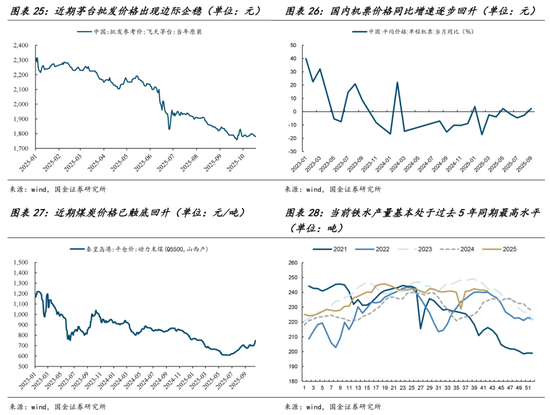从物价变化的情况来看,9月国内PPI同比增速进一步回升;结构上看,上游采掘业及原材料制造相关行业的同比增速改善情况更为明显。随着企业部门在政策支持下持续推进反内卷,目前落地到价格企稳回升的信号正在被持续观测到,后续值得关注的是相关行业利润持续改善的情况。