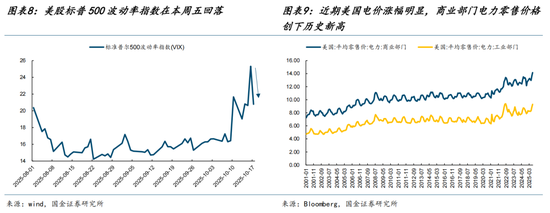 另外值得注意的是,如果中美地缘政治矛盾缓和的情况可以维持,这对海外制造业的修复是比较有利的。此外,随着此前美国在AI领域投资的快速增长,也需要以电力为代表的传统领域加大投入。伴随着近期美国在AI领域投资的增长,美国电价上涨明显,商业部门电力零售价格已突破历史新高。海外AI投资扩张带动传统行业修复的进程也会逐步开启。