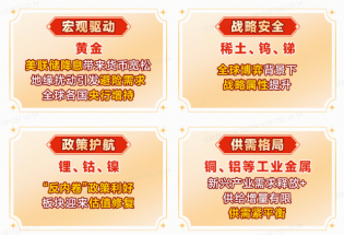 不过也有业内人士指出,与其押注黄金这单一赛道,不如放眼布局有色金属整个板块。值得关注的是,稀土、锂、铜等细分方向亦有利好催化: