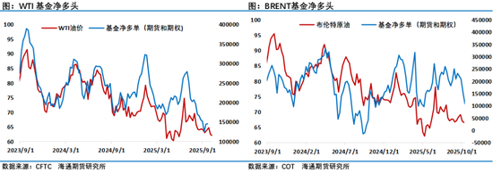 油价下行同时基金大幅削减了净多头寸,洲际交易所(ICE)最新持仓显示,截至10月14日当周,布伦特原油投机者将净多头头寸削减37794份合约,至109606份合约,二周来合计减持10万手净多持仓。WTI原油因美国 *** 停摆已经连续暂停了持仓报告更新,有分析称美国 *** 停摆预计将持续超过40天——这是历史上持续时间最长的一次。市场正为这对GDP及美联储政策可能产生的日益加剧的影响做准备。