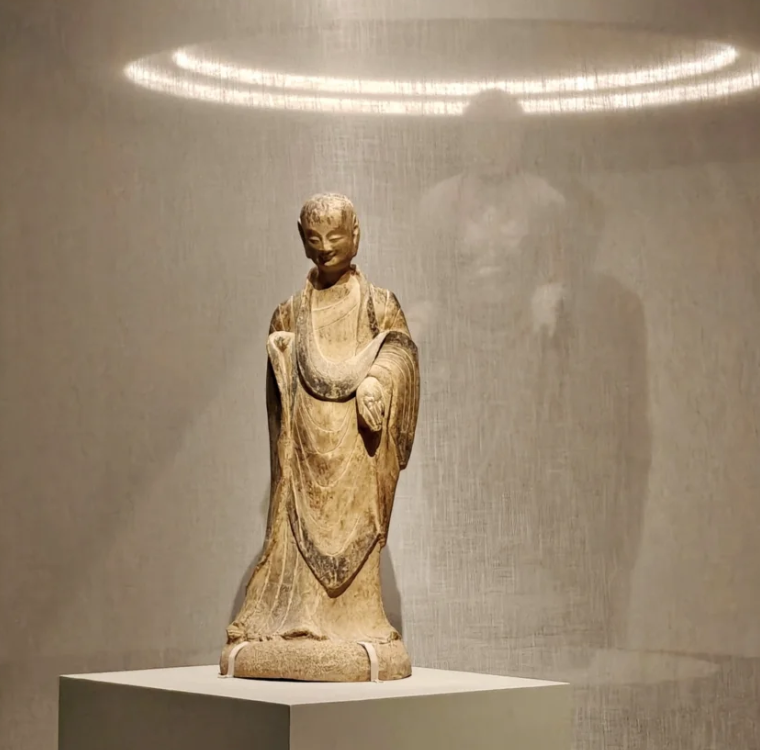 展出的37件造像,以龙兴寺遗址出土文物为主,另有部分源自广福寺遗址。尤其以山东青州龙兴寺标志性的“青州微笑”打动人心。