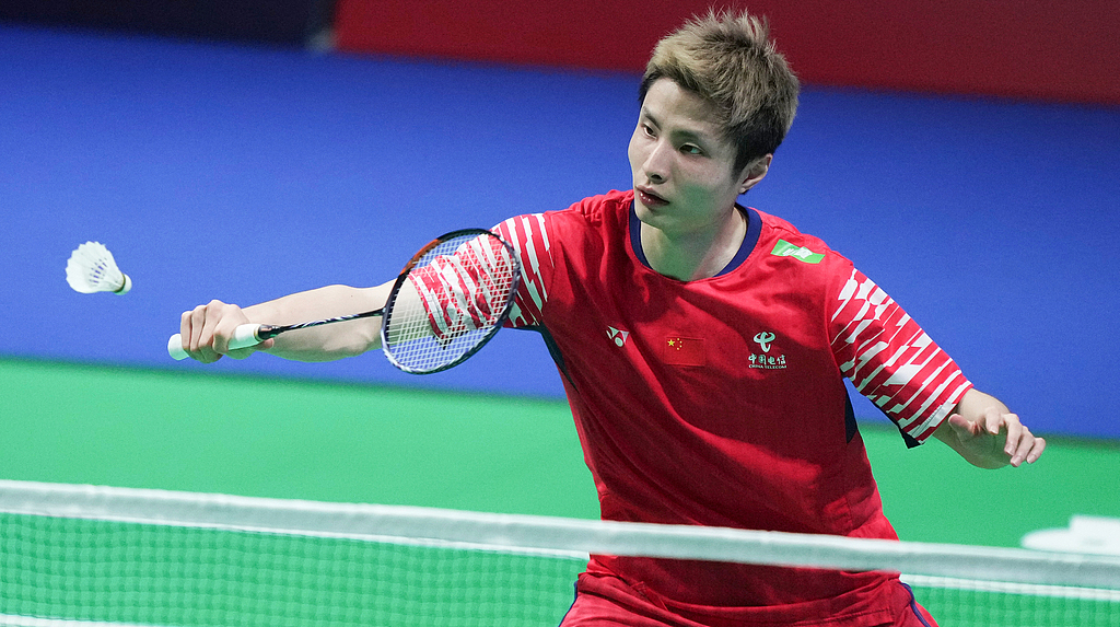 石宇奇在比赛中。