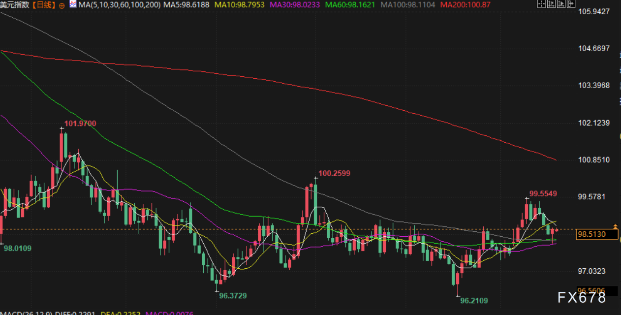 CBOE波动率指数即“恐慌指数”,在盘中触及近六个月高点28.99后回落至21.5。华尔街市值更大的几家公司涨跌不一:特斯拉涨2.5%,苹果涨近2%,亚马逊跌0.7%。