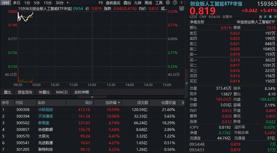 风险提示:创业板人工智能ETF华宝被动跟踪创业板人工智能指数,该指数基日为2018.12.28,发布日期为2024.7.11。创业板人工智能指数2020-2024年年度涨跌幅分别为:20.1%、17.57%、-34.52%、47.83%、38.44%,指数成份股构成根据该指数编制规则适时调整,其回测历史业绩不预示指数未来表现。文中指数成份股仅作展示,个股描述不作为任何形式的投资建议,也不代表管理人旗下任何基金的持仓信息和交易动向。基金管理人评估的本基金风险等级为R4-中高风险,适宜积极型(C4)及以上的投资者,适当性匹配意见请以销售机构为准。任何在本文出现的信息(包括但不限于个股、评论、预测、图表、指标、理论、任何形式的表述等)均只作为参考,投资人须对任何自主决定的投资行为负责。另,本文中的任何观点、分析及预测不构成对阅读者任何形式的投资建议,亦不对因使用本文内容所引发的直接或间接损失负任何责任。基金投资有风险,基金的过往业绩并不代表其未来表现,基金管理人管理的其他基金的业绩并不构成基金业绩表现的保证,基金投资须谨慎。